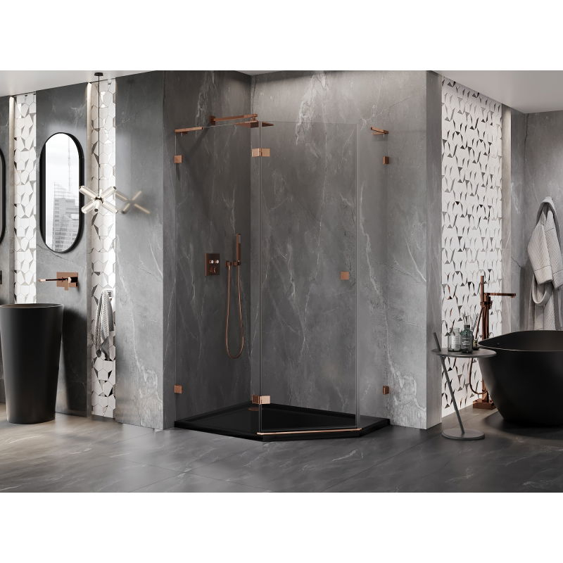 Sprchovací kút Mexen Lunar L päťuholníkový, ľavý, výklopný, 100 x 90 cm, priehľadný, ružové zlato - 831L-100L-090P-60-00-L