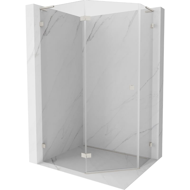 Sprchovací kút Mexen Lunar L päťuholníkový, ľavý, výklopný, 90 x 80 cm, priehľadný, kartáčovaný nikel - 831L-090L-080P-97-00-L