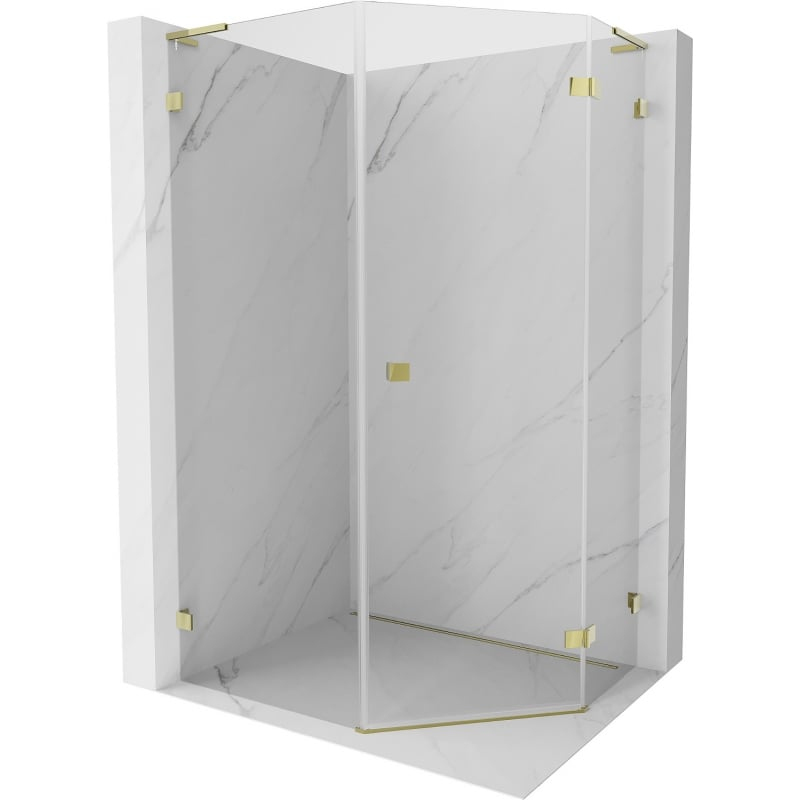 Sprchovací kút Mexen Lunar L päťuholníkový, pravý, výklopný, 80 x 90 cm, priehľadný, zlatý - 831L-080P-090L-50-00-P