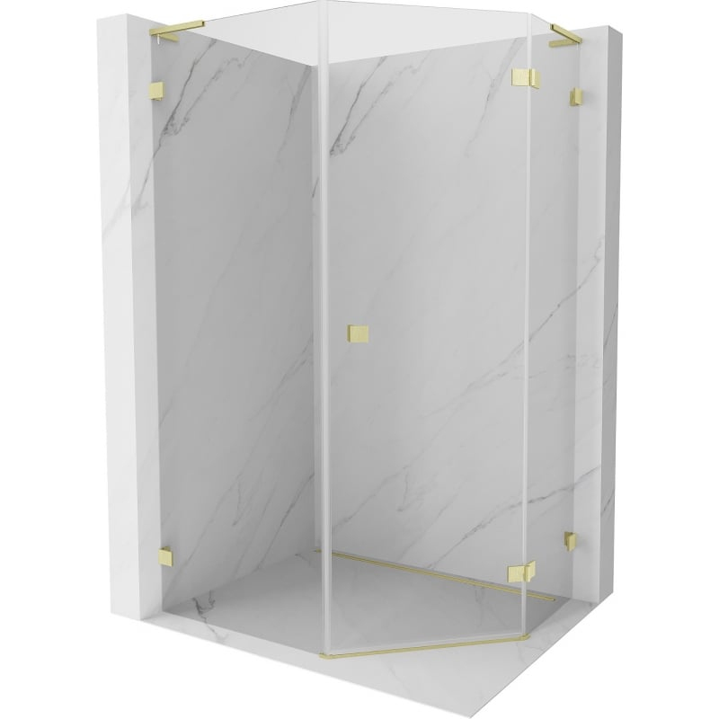 Sprchovací kút Mexen Lunar L päťuholníkový, pravý, výklopný, 90 x 100 cm, priehľadný, kartáčované zlato - 831L-090P-100L-55-00-P