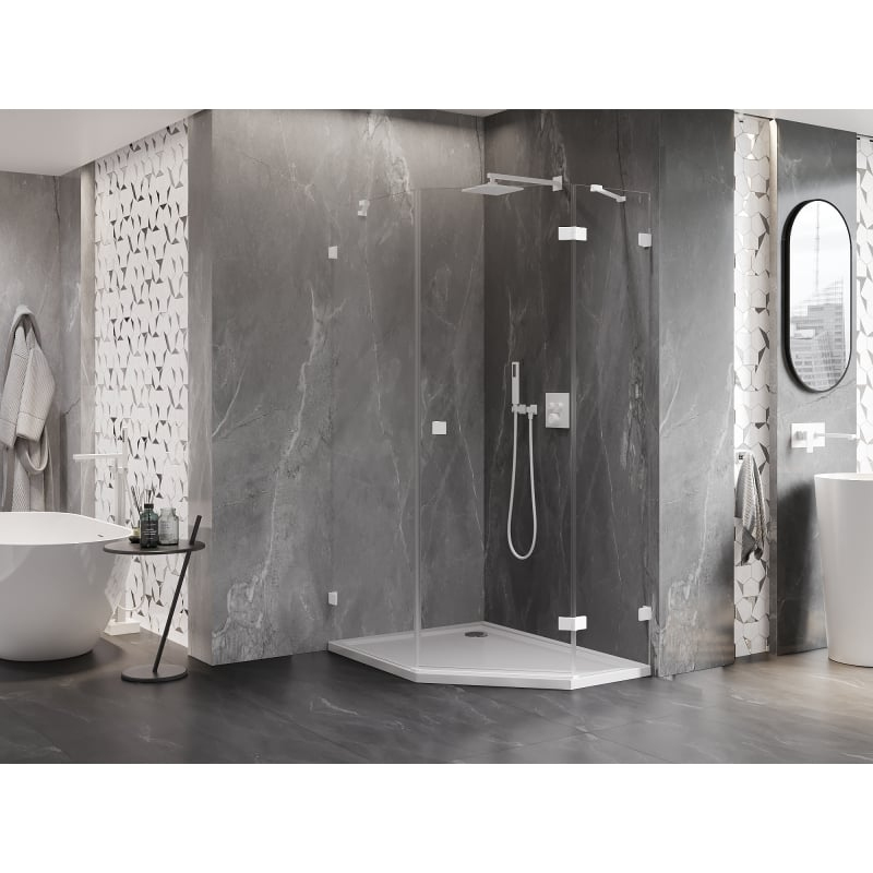 Sprchovací kút Mexen Lunar päťuholníkový, pravý, výklopný, 90 x 100 cm, priehľadný, biely - 831-090P-100L-20-00-P