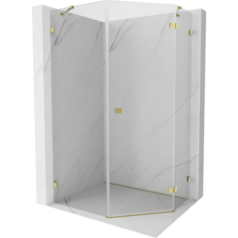 Sprchovací kút Mexen Lunar päťuholníkový, pravý, výklopný, 90 x 100 cm, priehľadný, zlatý - 831-090P-100L-50-00-P