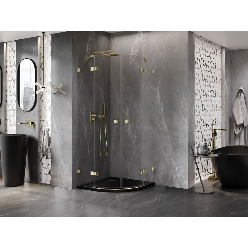 Sprchovací kút Mexen Lunar polkruhový výklopný 90 x 90 cm, priehľadný, zlatý - 833-090L-090P-50-00