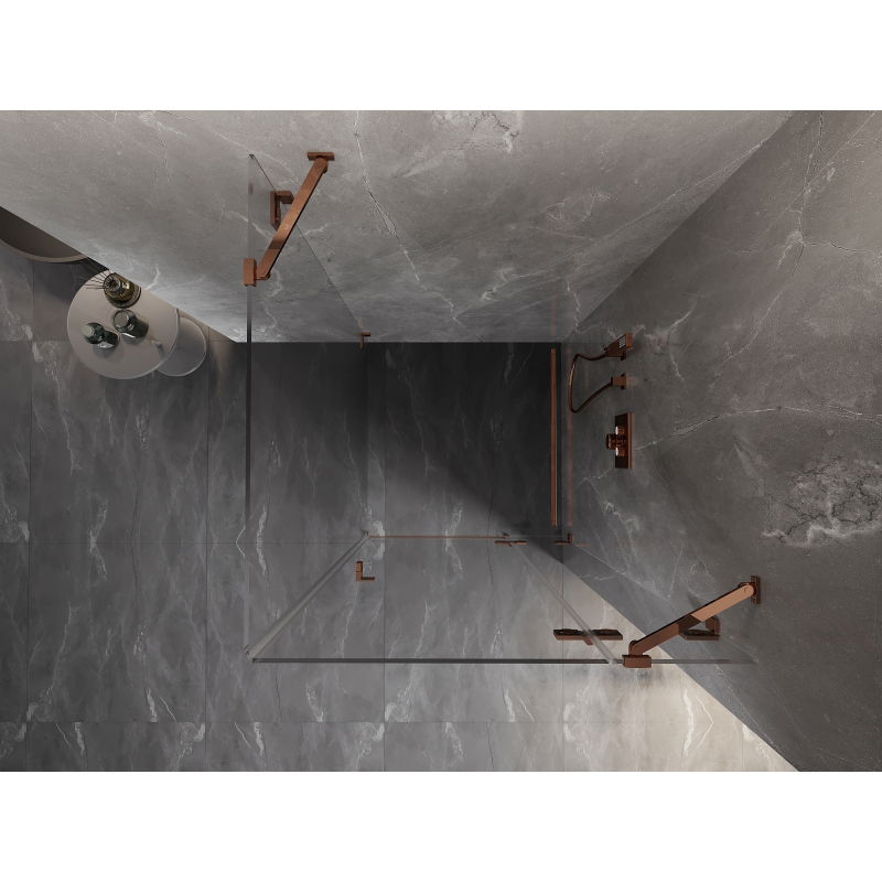 Špecifikácia produktu: Rozmer: 70x70 cm (pravé dvere 70 cm, stena 70 cm) Výška: 200 cm Strana montáže: Pravá Vchod: Dvere s otočnými pántami Farba skla: Priehľadná Povrchová úprava: Ružové zlato Profil: Hliník Typ skla: Tvrdené Hrúbka skla: 8 montážne systémy: - s profilom, ktorý umožňuje vyrovnanie nerovností stien - bez profilu pre dokonale rovné steny Možnosť montáže na sprchovú vaničku alebo obklady Mechanizmus na zdvíhanie a spúšťanie dverí Mosadzné svorky a pánty v jednej rovine so sklenenou tabuľou Magnetický prúžok a elastomérové tesnenie pre odvod vody Hliníkový prah