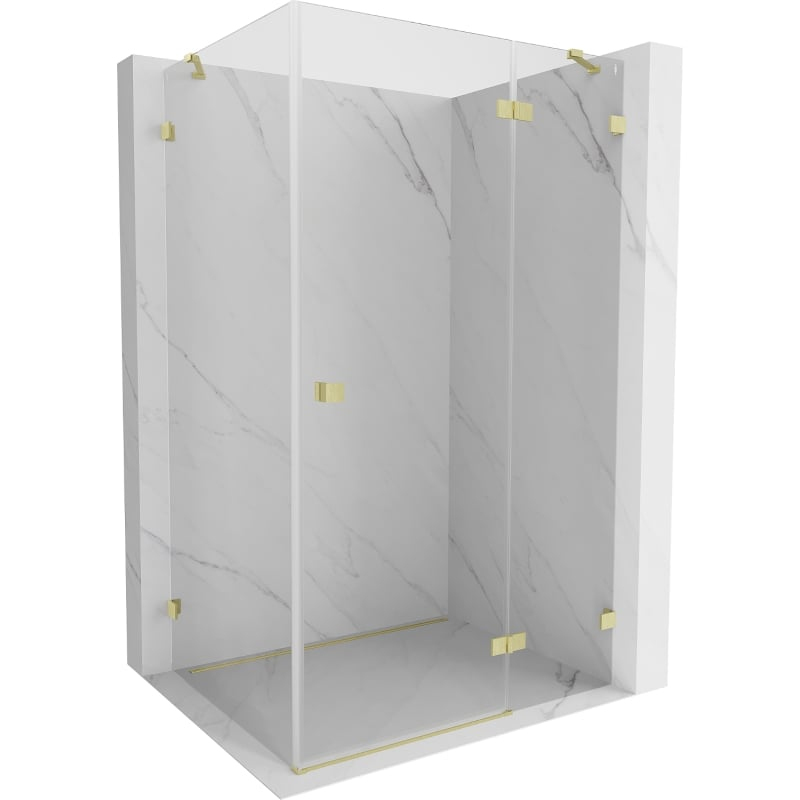 Špecifikácia produktu: Rozmer: 75x80 cm (pravé dvere 75 cm, stena 80 cm) Výška: 200 cm Strana montáže: Pravá Vchod: Dvere s otočnými pántami Farba skla: Priehľadná Povrchová úprava: Kartáčované zlato Profil: Hliník Typ skla: Tvrdené Hrúbka skla: 8 montážne systémy: - s profilom, ktorý umožňuje vyrovnanie nerovností stien - bez profilu pre dokonale rovné steny Možnosť montáže na sprchovú vaničku alebo obklady Mechanizmus na zdvíhanie a spúšťanie dverí Mosadzné svorky a pánty v jednej rovine so sklenenou tabuľou Magnetický prúžok a elastomérové tesnenie pre odvod vody Hliníkový prah
