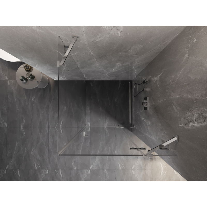 Špecifikácia produktu: Rozmer: 80x80 cm (pravé dvere 80 cm, stena 80 cm) Výška: 200 cm Strana montáže: Pravá Vchod: Dvere s výklopnými pántami Farba skla: Priehľadná Povrchová úprava: Chróm Profil: Hliník Typ skla: Tvrdené Hrúbka skla: 8 mm systémy: - s profilom, ktorý umožňuje vyrovnanie nerovností stien - bez profilu pre dokonale rovné steny Možnosť montáže na sprchovú vaničku alebo obklady Mechanizmus na zdvíhanie a spúšťanie dverí Mosadzné svorky a pánty v jednej rovine so sklenenou tabuľou Magnetický prúžok a elastomérové tesnenie pre odvod vody Hliníkový prah tesnení
