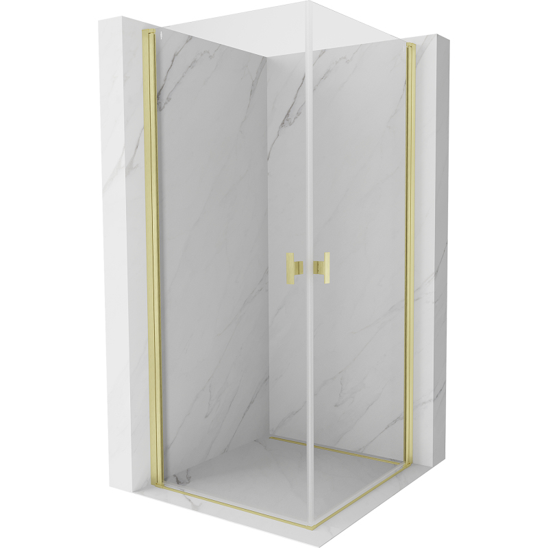 Sprchovací kút Mexen Mist-B Duo s výklopným mechanizmom 100 x 100 cm, priehľadný, kartáčované zlato - 8A2-100-100-55-00