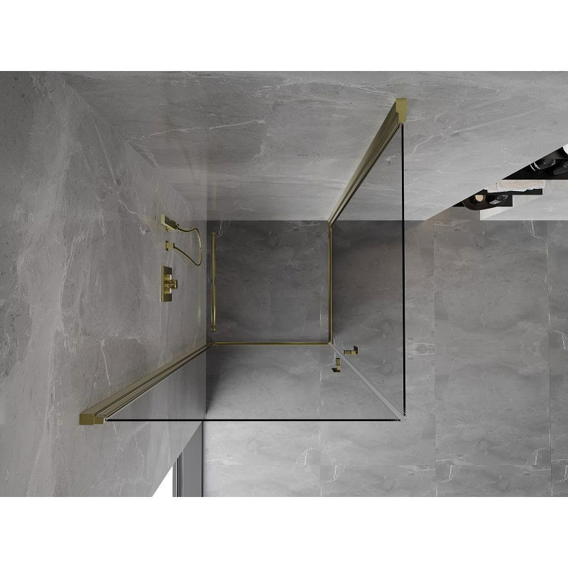 Sprchovací kút Mexen Mist-B Duo s výklopným mechanizmom 90 x 90 cm, priehľadný, zlatý - 8A2-090-090-50-00