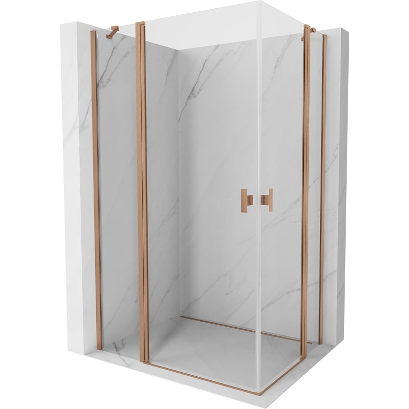 Sprchovací kút Mexen Mist Duo s výklopným mechanizmom 120 x 70 cm, priehľadný, kartáčovaná meď - 8A4-120-070-65-00