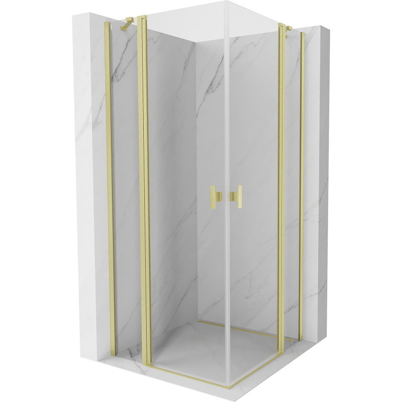 Sprchovací kút Mexen Mist Duo s výklopným mechanizmom 80 x 80 cm, priehľadný, kartáčované zlato - 8A4-080-080-55-00