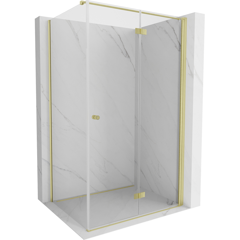 Špecifikácia produktu: Rozmer: 75x90 cm (pravé dvere 75 cm, stena 90 cm) Výška: 200 cm Strana montáže: Pravá Vchod: Skladacie dvere Farba skla: Priehľadná Povrchová úprava: Zlatá Profil: Hliník Konzola: Nerezová oceľ Max. dĺžka konzoly: 150 cm Konzolu je možné rezať Typ skla: Tvrdené Hrúbka skla: 6 mm Povrchová úprava pre ľahké čistenie Nastaviteľná šírka Možnosť montáže na sprchovú vaničku alebo dlaždice Mechanizmus pre zdvíhanie a spúšťanie dverí Mosadzné pánty v jednej rovine so sklom Hliníkový prah tesnenia dverí
