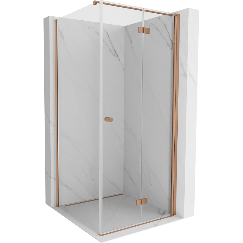 Sprchovací kút Mexen Mist-F skladací pravý 95 x 95 cm, priehľadný, kartáčovaná meď - 8A6T-095-095-65-00-P