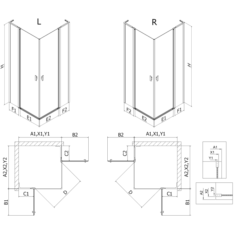 Špecifikácia produktu: Rozmer: 105x105 cm Výška: 200 cm Strana montáže: Univerzálny Vchod: Dvere s výklopnými krídlami Farba skla: Priehľadná Povrchová úprava: Kartáčované zlato Profil: Hliník Uhlový stabilizátor L: Nerezová oceľ Typ skla: Tvrdené Hrúbka skla: inštalácia na sprchovú vaničku alebo dlaždice Mechanizmus na zdvíhanie a spúšťanie dverí Magnetický prúžok a elastomérové tesnenie na odtok vody Hliníkový prah tesnenia dverí
