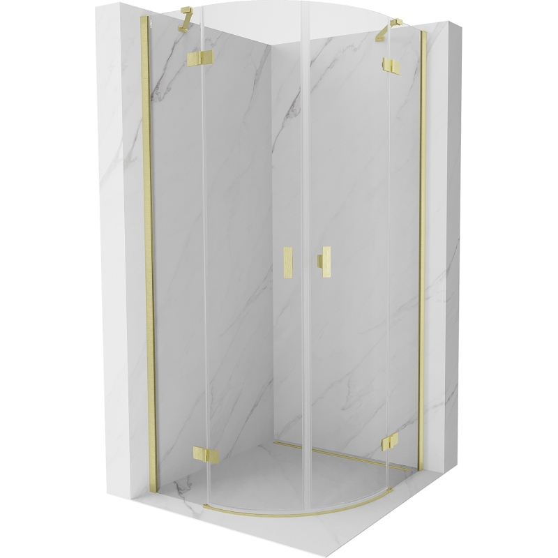 Špecifikácia produktu: Rozmer: 100x100 cm Výška: 200 cm Polomer zakrivenia R55 Strana montáže: Univerzálny Vchod: Dvere s otočnými pántami Farba skla: Priehľadná Povrchová úprava: Kartáčované zlato Profil: Hliník Konzola: Nerezová oceľ Typ skla: Tvrdené Hrúb Nastaviteľná šírka Možnosť inštalácie na sprchovú vaničku alebo dlaždice Mechanizmus na zdvíhanie a spúšťanie dverí Mosadzné pánty v jednej rovine so sklom Magnetický prúžok a elastomérové tesnenie na odtok vody Hliníkový prah tesnenia dverí