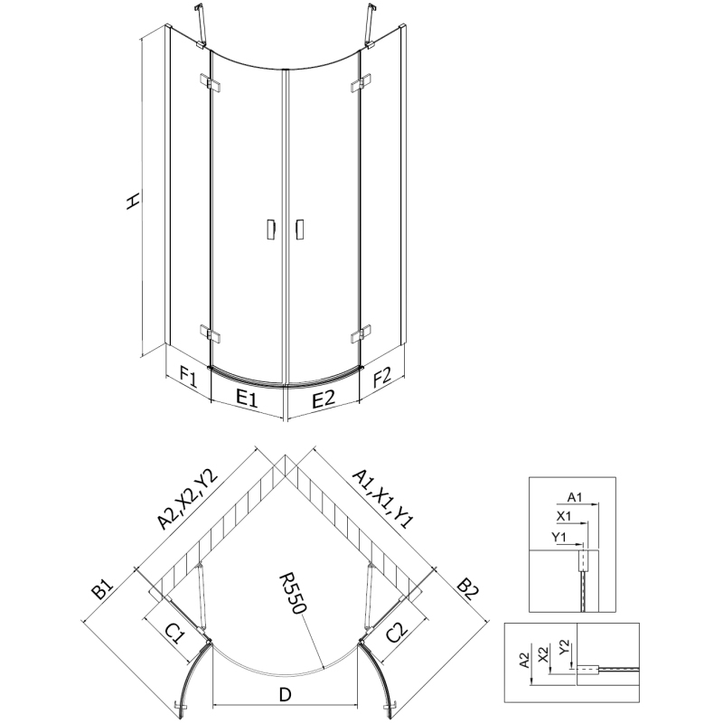 Špecifikácia produktu: Rozmer: 70x70 cm Výška: 200 cm Polomer zakrivenia R55 Strana montáže: Univerzálny Vchod: Dvere s otočnými pántami Farba skla: Priehľadná Povrchová úprava: Kartáčovaná meď Profil: Hliník Konzola: Nerezová oceľ Typ skla: Tvrdené Hrúbka šírka Možnosť inštalácie na sprchovú vaničku alebo dlaždice Mechanizmus na zdvíhanie a spúšťanie dverí Mosadzné pánty v jednej rovine so sklom Magnetický prúžok a elastomérové tesnenie na odtok vody Hliníkový prah tesnenia dverí