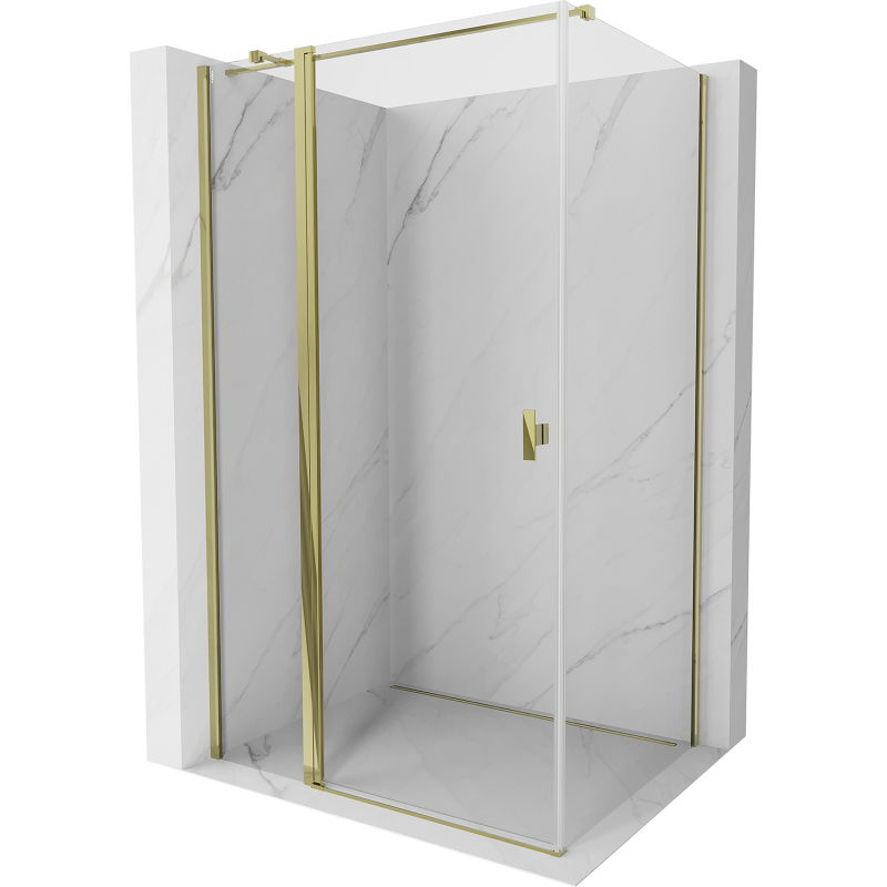 Špecifikácia produktu: Rozmer: 85x110 cm (dvere 85 cm, stena 110 cm) Výška: 200 cm Strana montáže: Univerzálny Vchod: Dvere s otočnými pántami Farba skla: Priehľadná Povrchová úprava: Zlatá Profil: Hliník Konzola: Nerezová oceľ Max. dĺžka konzoly: 150 cm Konzolu možno rezať Typ skla: Tvrdené Hrúbka skla: 6 mm Povrchová úprava pre ľahké čistenie Nastaviteľná šírka Možnosť montáže na sprchovú vaničku alebo dlaždice Mechanizmus zdvíhania a spúšťania dverí Magnetický prúžok a elastomérové tesnenie pre odtok