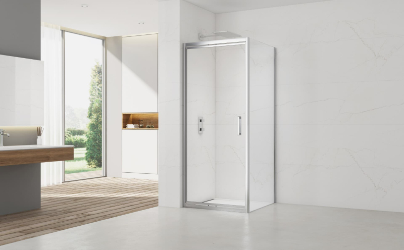 Sprchovací kút vrátane bočnej zásteny v lesklom chróme, výplň je z číreho skla bez dekoru. Produkt je opatrený povrchovou úpravou Easy Clean, ktorá uľahčuje čistenie a minimalizuje usadzovanie vodného kameňa. Zalamovací systém otvárania. Určenie - ľavá aj pravá orientácia.