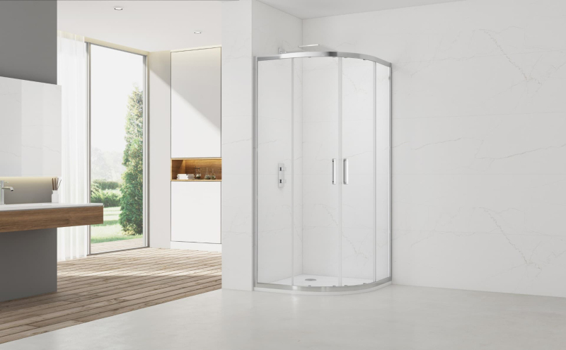 Sprchovací kút s vaničkou a farbou profilov v lesklom chróme, výplň je z číreho skla bez dekoru. Produkt je opatrený povrchovou úpravou Easy Clean, ktorá uľahčuje čistenie a minimalizuje usadzovanie vodného kameňa. Posuvný systém otvárania. Určenie - ľavá aj pravá orientácia.