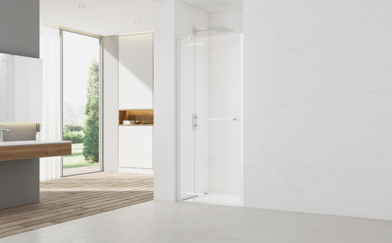 Sprchové dvere vrátane nikového profilu biela, výplň je z číreho skla bez dekoru. Produkt je opatrený povrchovou úpravou Easy Clean, ktorá uľahčuje čistenie a minimalizuje usadzovanie vodného kameňa. Pántový systém otvárania. Určenie - ľavá aj pravá orientácia.