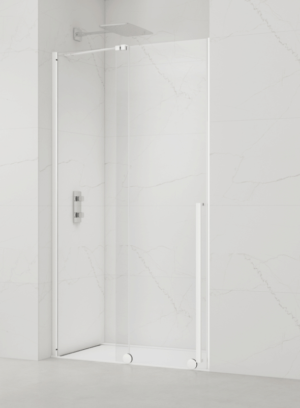 Sprchové dvere vrátane nikového profilu biela, výplň je z číreho skla bez dekoru. Produkt je opatrený povrchovou úpravou Easy Clean, ktorá uľahčuje čistenie a minimalizuje usadzovanie vodného kameňa. Posuvný systém otvárania. Určenie - ľavá aj pravá orientácia.
