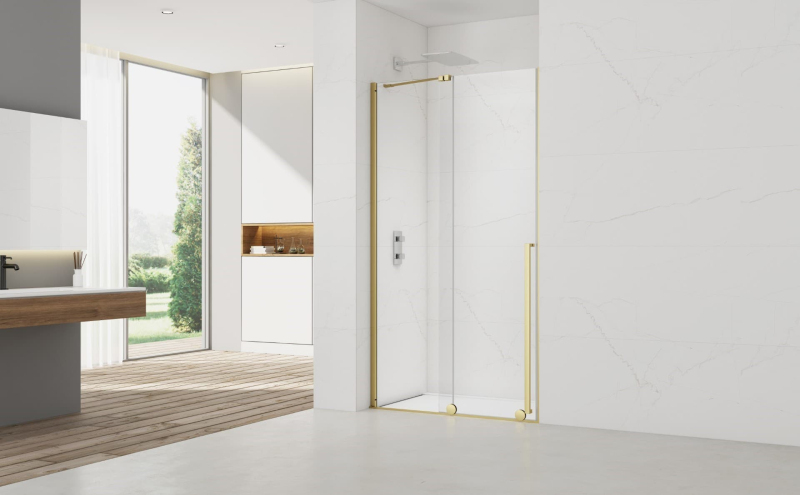 Sprchové dvere vrátane nikového profilu v zlatom lesklom prevedení, výplň je z číreho skla bez dekoru. Produkt je opatrený povrchovou úpravou Easy Clean, ktorá uľahčuje čistenie a minimalizuje usadzovanie vodného kameňa. Posuvný systém otvárania. Určenie - ľavá aj pravá orientácia.
