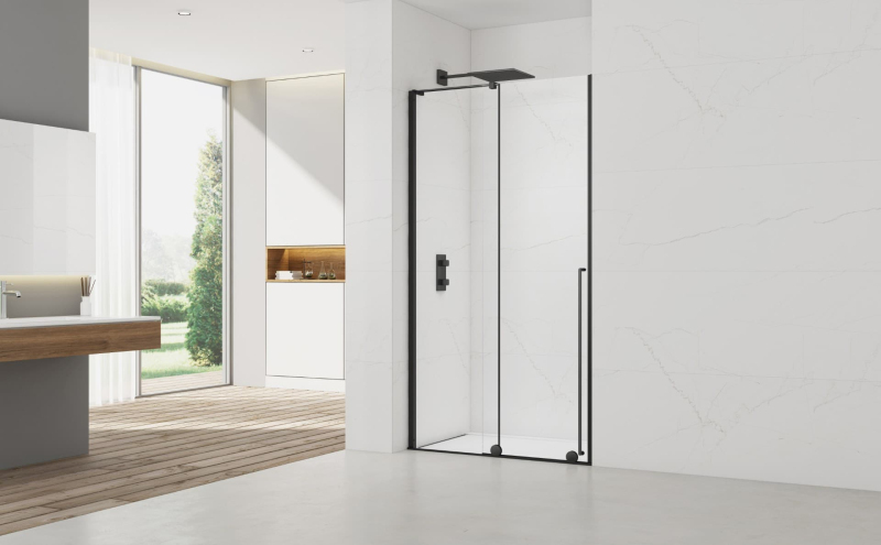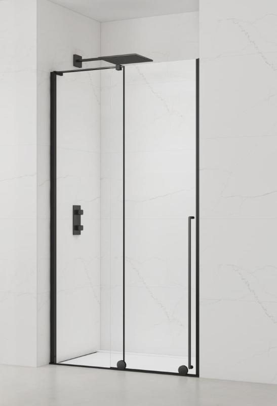 Sprchové dvere vrátane nikového profilu v čiernej farbe, výplň je z číreho skla bez dekoru. Produkt je opatrený povrchovou úpravou Easy Clean, ktorá uľahčuje čistenie a minimalizuje usadzovanie vodného kameňa. Posuvný systém otvárania. Určenie - ľavá aj pravá orientácia.