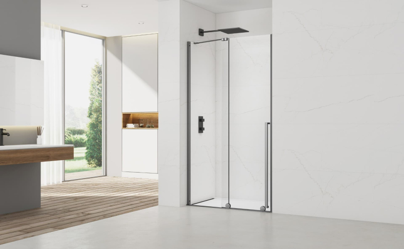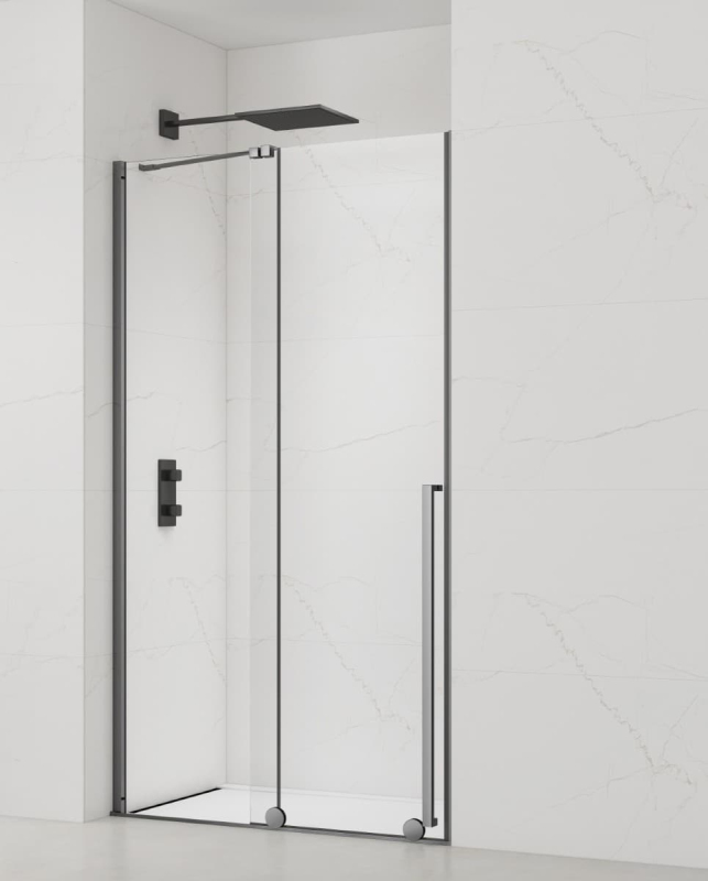 Sprchové dvere vrátane nikového profilu v čiernej farbe, výplň je z číreho skla bez dekoru. Produkt je opatrený povrchovou úpravou Easy Clean, ktorá uľahčuje čistenie a minimalizuje usadzovanie vodného kameňa. Posuvný systém otvárania. Určenie - ľavá aj pravá orientácia.