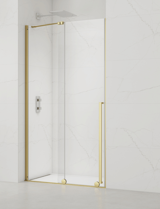 Sprchové dvere vrátane nikového profilu v zlatom lesklom prevedení, výplň je z číreho skla bez dekoru. Produkt je opatrený povrchovou úpravou Easy Clean, ktorá uľahčuje čistenie a minimalizuje usadzovanie vodného kameňa. Posuvný systém otvárania. Určenie - ľavá aj pravá orientácia.