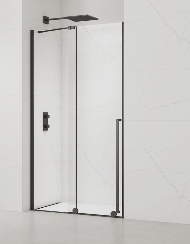 Sprchové dvere vrátane nikového profilu v čiernej farbe, výplň je z číreho skla bez dekoru. Produkt je opatrený povrchovou úpravou Easy Clean, ktorá uľahčuje čistenie a minimalizuje usadzovanie vodného kameňa. Posuvný systém otvárania. Určenie - ľavá aj pravá orientácia.