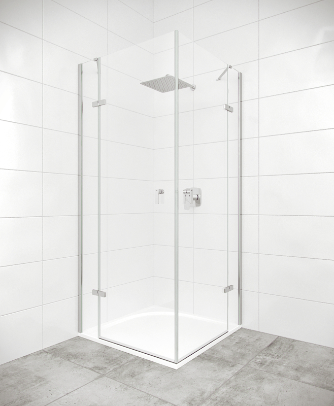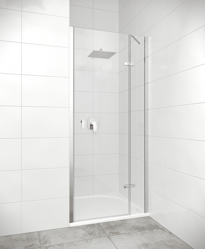 Sprchové dvere bez madiel a vaničky v lesklom chróme, výplň je z číreho skla bez dekoru. Produkt je opatrený technológiou Hüppe Anti-Plaque - povrchová úprava aplikovaná vo výrobe, ktorá uľahčuje čistenie a umožňuje jednoduché stekanie vody v podobne drobných kvapiek. Otočný systém otvárania. Pravá orientácia.
