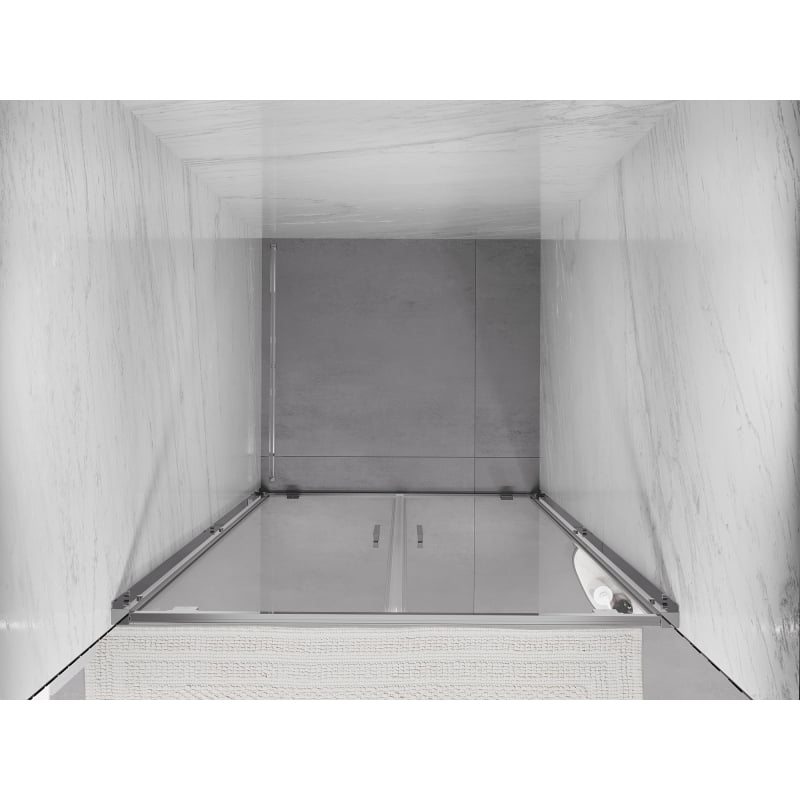 Špecifikácia produktu: Rozmer: 100x200 cm Montáž: Univerzálny Vstup: S výklopnými závesmi Farba skla: Priehľadná Typ skla: Tvrdené Hrúbka skla: 6 mm Profil: Hliník Povrchová úprava: Chróm Povrchová úprava pre ľahké čistenie Vyrovnanie nerovností steny Nastavenie šírky Možnosť montáže na sprchu odvod vody Hliníkový prah na tesnenie dverí