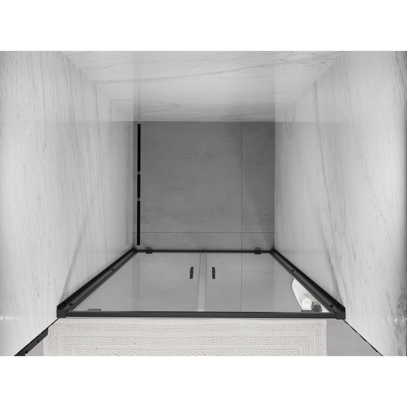 Špecifikácia produktu: Rozmer: 100x200 cm Montáž: Univerzálny Vchod: S výklopnými závesmi Farba skla: Priehľadná Typ skla: Tvrdené Hrúbka skla: 6 mm Profil: Hliník Povrchová úprava: Čierna Povlak pre ľahké čistenie Vyrovnanie nerovností steny Nastavenie šírky Možnosť montáže na sprchovú vaňu Hliníkový prah na tesnenie dverí