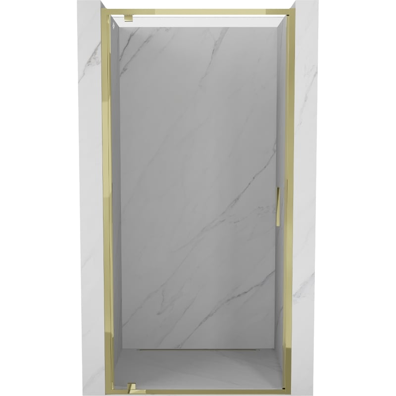 Špecifikácia produktu: Rozmer: 95x200 cm Montáž: Univerzálna Vstup: S pánty Farba skla: Priehľadná Typ skla: Tvrdené Hrúbka skla: 6 mm Profil: Hliník Povrchová úprava: Zlatý náter pre ľahké čistenie Vyrovnanie nerovností steny Nastavenie šírky Možnosť montáže na sprchovú vaničku alebo obklady prah na tesnenie dverí