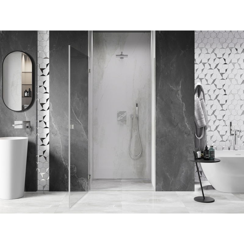 Specifikace produktu: Rozměr: 55x200 cm Strana montáže: Levá Vchod: Otevíravý Barva skla: Průhledná Povrchová úprava: Kartáčovaný nikl Profil: Hliník Typ skla: Tvrzené Tloušťka skla: 6 mm Povrchová úprava pro snadné čištění Možnost nastavení šířky Dva montážní systémy: - S profilem, který umožňuje vyrovnání nerovností stěny - Bez profilu pro dokonale rovné stěny Možnost montáže na sprchovou vaničku nebo obklady Mechanismus pro zvedání a spouštění dveří Mosazné svorky v jedné rovině se skleněnou tabulí Magnetický proužek a elastomerové těsnění pro odvod vody Hliníkový práh těsnění dveří