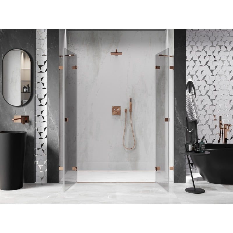 Sprchové dveře Mexen Lunar Duo s otočnými dveřmi 190 cm, průhledné, růžové zlato - 834D-190-000-60-00