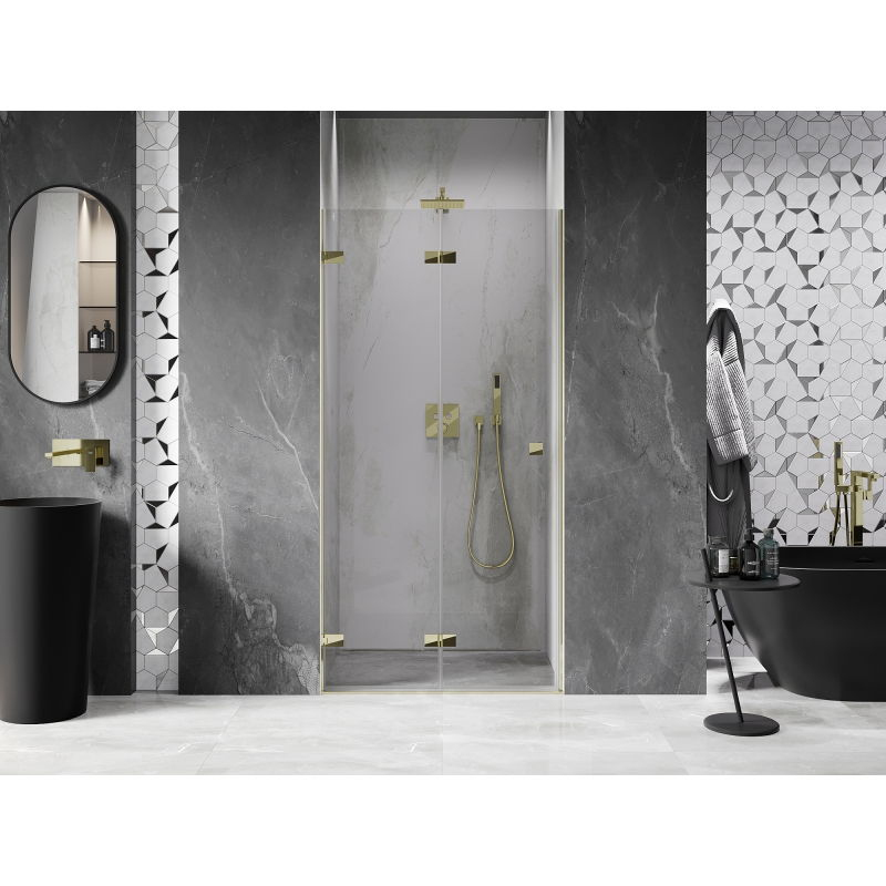 Sprchové dvere Mexen Lunar-F ľavé skladacie 80 cm, priehľadné, zlaté - 836-080-000-50-00-L