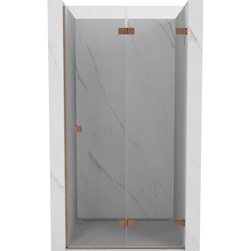Špecifikácia produktu: Rozmer: 90x200 cm Strana montáže: Pravá Vchod: Skladacia Farba skla: Priehľadná Povrchová úprava: Kartáčovaná meď Profil: Hliník Typ skla: Tvrdené Hrúbka skla: 6 mm Povrchová úprava pre ľahké čistenie Možnosť nastavenia šírky Dva montážne systémy: - S profilom, ktorý umožňuje vy sprchovú vaničku alebo obklady Mosadzné svorky a pánty v jednej rovine so sklenenou tabuľou Magnetický prúžok a elastomérové tesnenie na odvod vody Hliníkový prah tesnenia dverí
