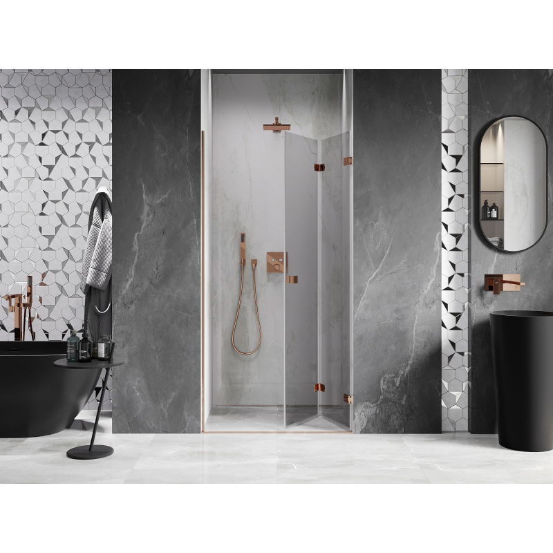Sprchové dvere Mexen Lunar-F pravé skladacie 90 cm, priehľadné, ružové zlato - 836-090-000-60-00-P