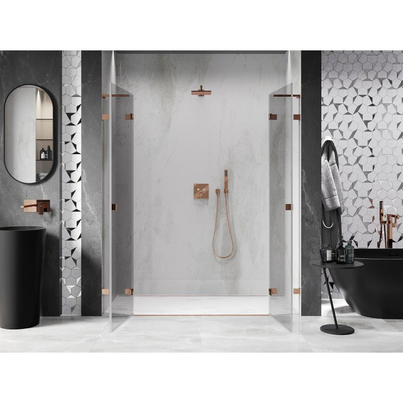 Sprchové dveře Mexen Lunar L Duo s otočnými dveřmi 170 cm, průhledné, růžové zlato - 834DL-170-000-60-00