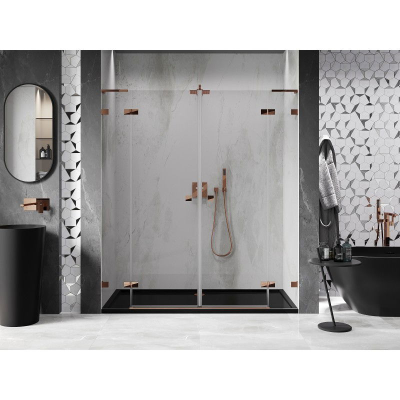 Sprchové dveře Mexen Lunar L Duo s otočnými dveřmi 180 cm, průhledné, růžové zlato - 834DL-180-000-60-00