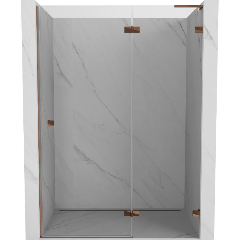 Špecifikácia produktu: Rozmer: 135x200 cm Strana montáže: Pravá Vchod: Otváravý Farba skla: Priehľadná Povrchová úprava: Ružové zlato Profil: Hliník Stabilizátor v tvare L: Nerezová oceľ Typ skla: Tvrdené Hrúbka skla: 8 mm Povrchová úprava pre ľahké čistenie Možnosť nastavenia steny - Bez profilu pre dokonale rovné steny Možnosť montáže na sprchovú vaničku alebo obklady Mechanizmus na zdvíhanie a spúšťanie dverí Mosadzné svorky a pánty v jednej rovine so sklenenou tabuľou Magnetický prúžok a elastomérové tesnenie na odvod vody Hliníkový prah tesnenia dverí