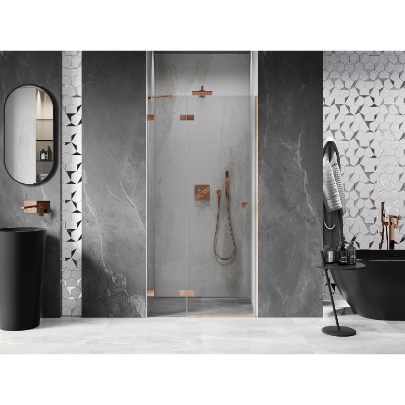 Sprchové dvere Mexen Lunar s ľavými pántami 85 cm, priehľadné, kartáčovaná meď - 834-085-000-65-00-L