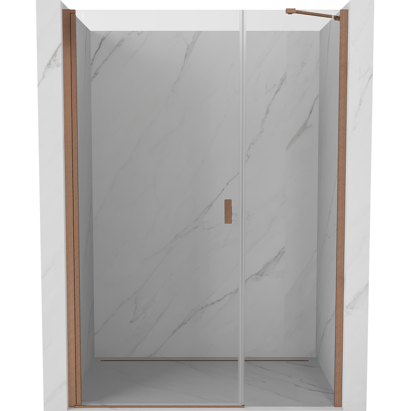 Špecifikácia produktu: Rozmer: 105x200 cm Strana montáže: Univerzálny Vchod: Výklopný Farba skla: Priehľadná Povrchová úprava: Kartáčovaná meď Profil: Hliník Konzola: Nerezová oceľ Typ skla: Tvrdené Hrúbka skla: 6 mm Povrchová úprava pre ľahké čistenie Nastaviteľná šírka Možnosť zdvíhanie a spúšťanie dverí Magnetický prúžok a elastomérové tesnenie pre odtok vody Hliníkový prah tesnenia dverí