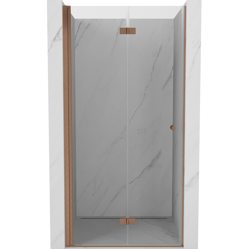 Sprchové dvere Mexen Mist-F ľavé skladacie 80 cm, priehľadné, kartáčovaná meď - 8A6-080-000-65-00-L
