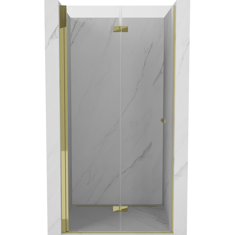 Špecifikácia produktu: Rozmer: 85x200 cm Strana montáže: Ľavá Vchod: Skladacia Farba skla: Priehľadná Povrchová úprava: Zlatá Profil: Hliník Konzola: Nerezová oceľ Typ skla: Tvrdené Hrúbka skla: 6 mm Povrchová úprava pre ľahké čistenie Nastaviteľná šírka Možnosť inštalácie na sprchovú dverí Mosadzné pánty v jednej rovine so sklom Magnetický prúžok a elastomérové tesnenie pre odvod vody Hliníkový prah tesnenia dverí