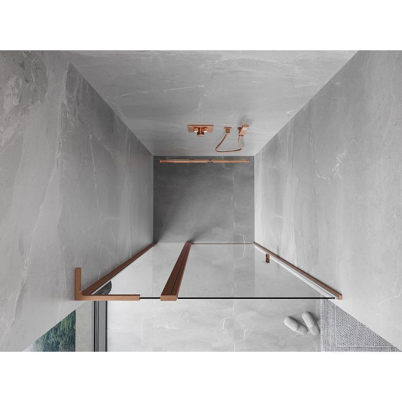 Sprchové dvere Mexen Mist L s otočným výklopným otvorom 115 cm, priehľadné, kartáčovaná meď - 8A4L-115-000-65-00
