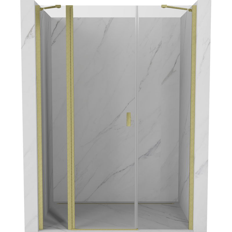 Špecifikácia produktu: Rozmer: 125x200 cm Strana montáže: Univerzálny Vchod: Výklopný Farba skla: Priehľadná Povrchová úprava: Kartáčované zlato Profil: Hliník Konzola: Nerezová oceľ Typ skla: Tvrdené Hrúbka skla: 6 mm Povrchová úprava pre ľahké čistenie Nastaviteľná šírka Možnosť inštalácie zdvíhanie a spúšťanie dverí Magnetický prúžok a elastomérové tesnenie pre odtok vody Hliníkový prah tesnenia dverí