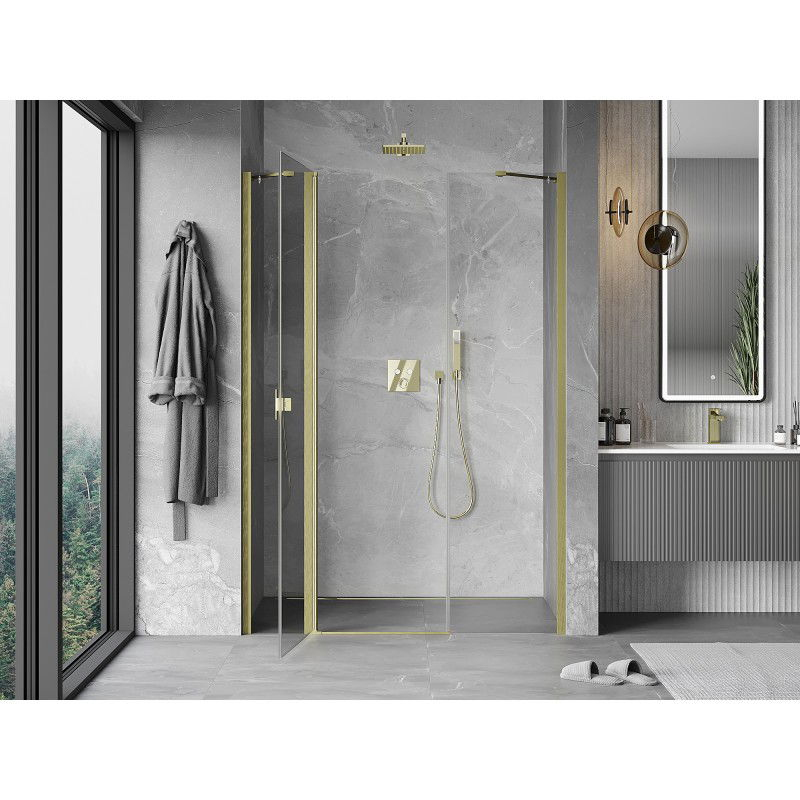 Sprchové dvere Mexen Mist s otočnými dverami 125 cm, priehľadné, kartáčované zlato - 8A4-125-001-55-00