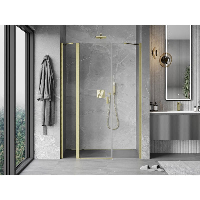 Sprchové dvere Mexen Mist s otočnými dverami 140 cm, priehľadné, kartáčované zlato - 8A4-140-001-55-00