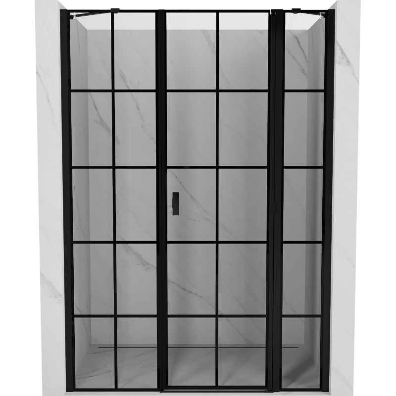 Špecifikácia produktu: Rozmer: 130x200 cm Strana montáže: Pravá Vchod: Výklopný Farba skla: Čierna mriežka Povrchová úprava: Čierna Profil: Hliník Konzola: Nerezová oceľ Typ skla: Tvrdené Hrúbka skla: 6 mm Povrchová úprava pre ľahké čistenie Nastaviteľná šírka Možnosť inštalácie a spúšťanie dverí Magnetický prúžok a elastomérové tesnenie pre odtok vody Hliníkový prah tesnenia dverí